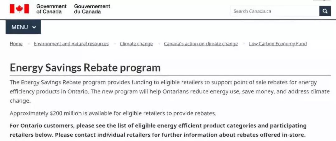 就是说,您在享受购买补贴的同时,还可以节省能源开销!加拿大政府拨款给安省本地的零售商,零售商在购买符合条件的产品时向客户提供折扣之后,加拿大政府将报销零售商向客户提供的折扣。
